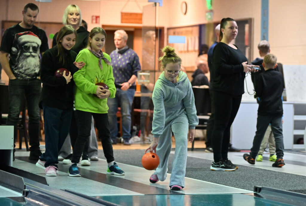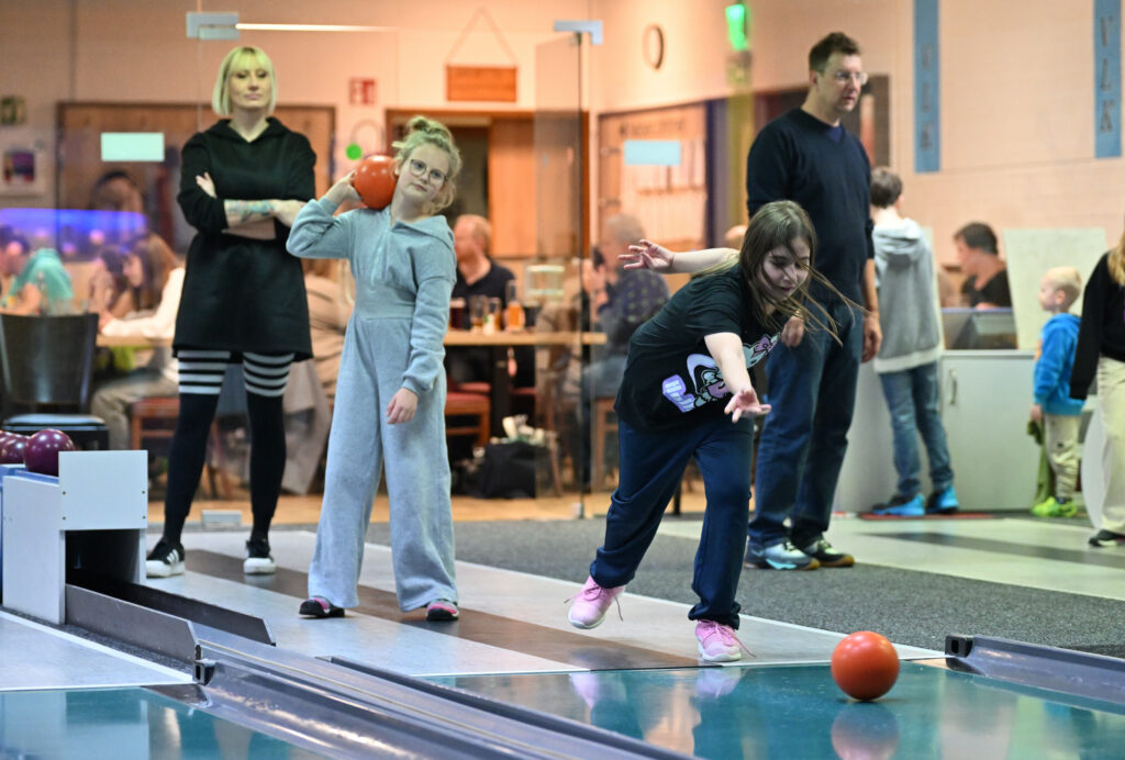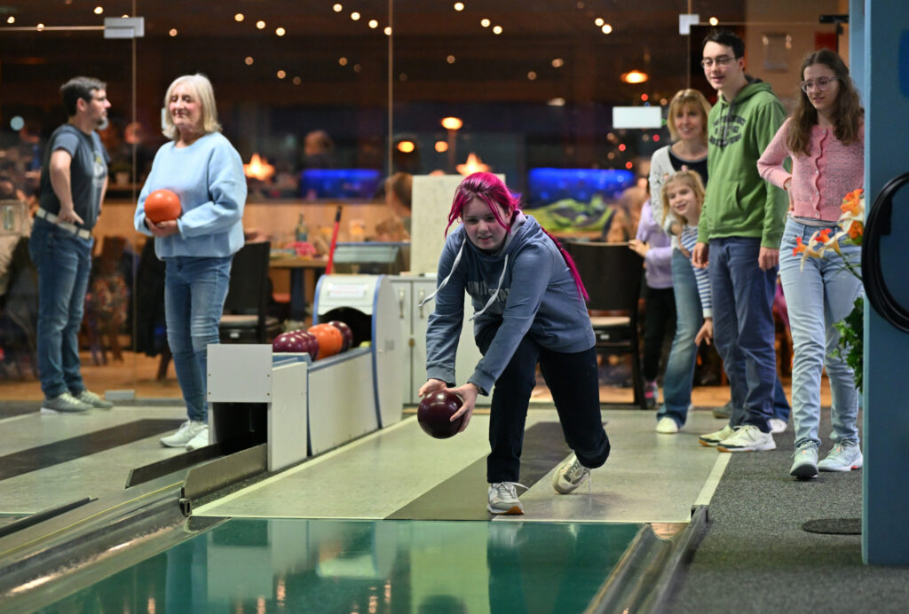 Aber wozu sind wir in der Biedensandhalle? Kegel frei!