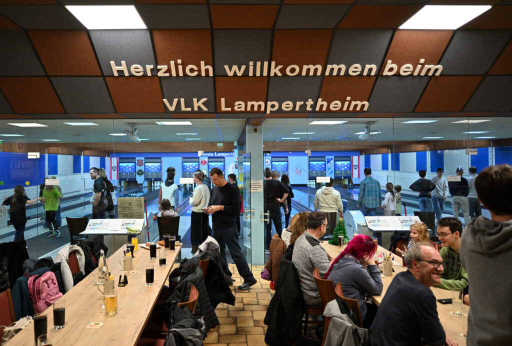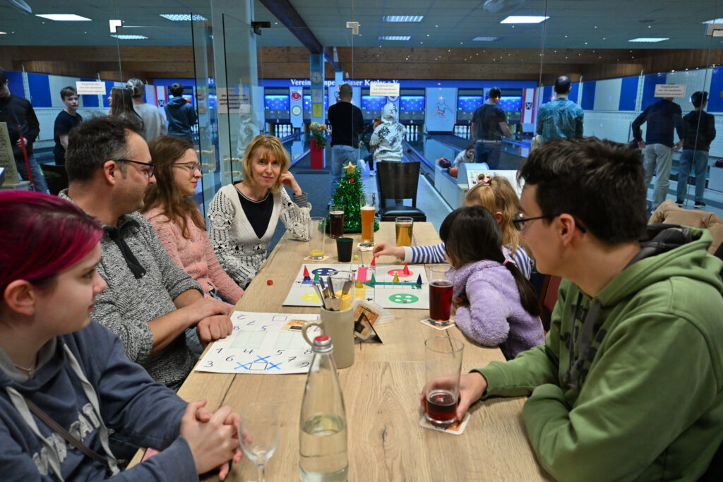Kegeln erfordert erstaunlich ähnliche Tugenden. Also fand die diesjährige Weihnachtsfeier in der Biedensandhalle des Vereins Lampertheimer Kegler statt. 85 Anmeldungen bekundeten das große Interesse. Wir belegten alle 8 Bahnen. Auch brachten wir die Gaststätte Gut Holz ordentlich ins Schwitzen, um uns kulinarisch zu versorgen.