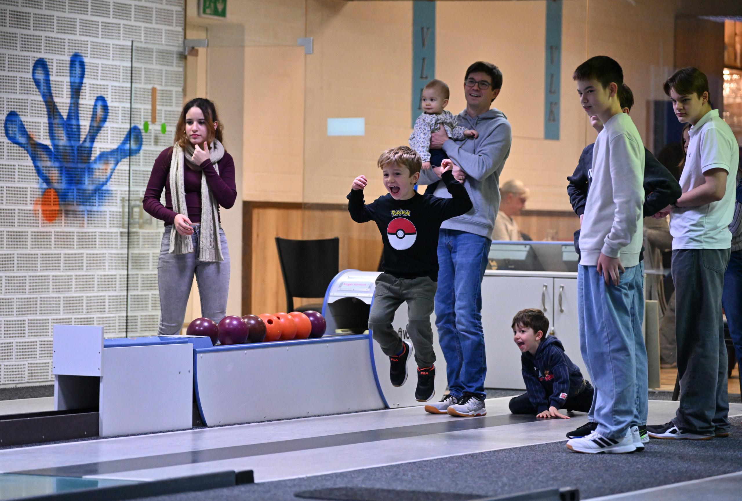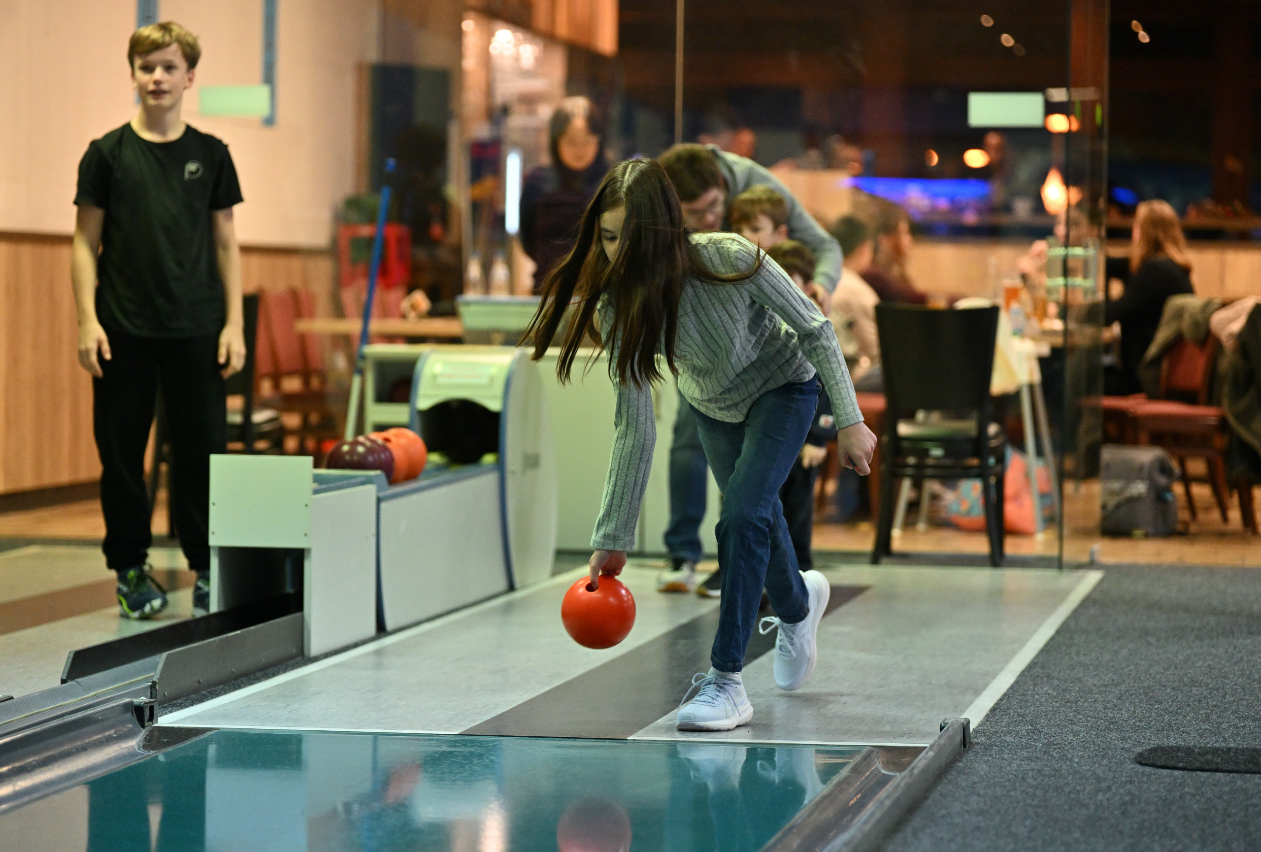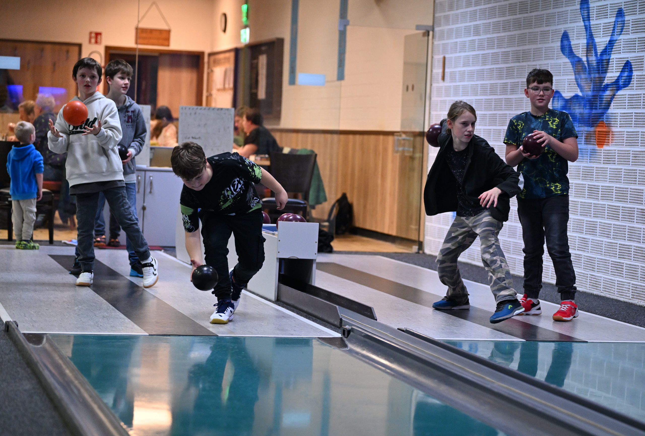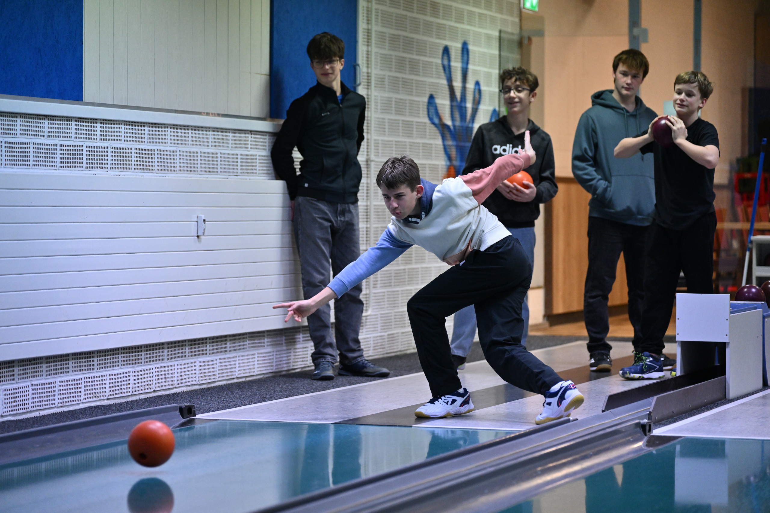 Aber wozu sind wir in der Biedensandhalle? Kegel frei!