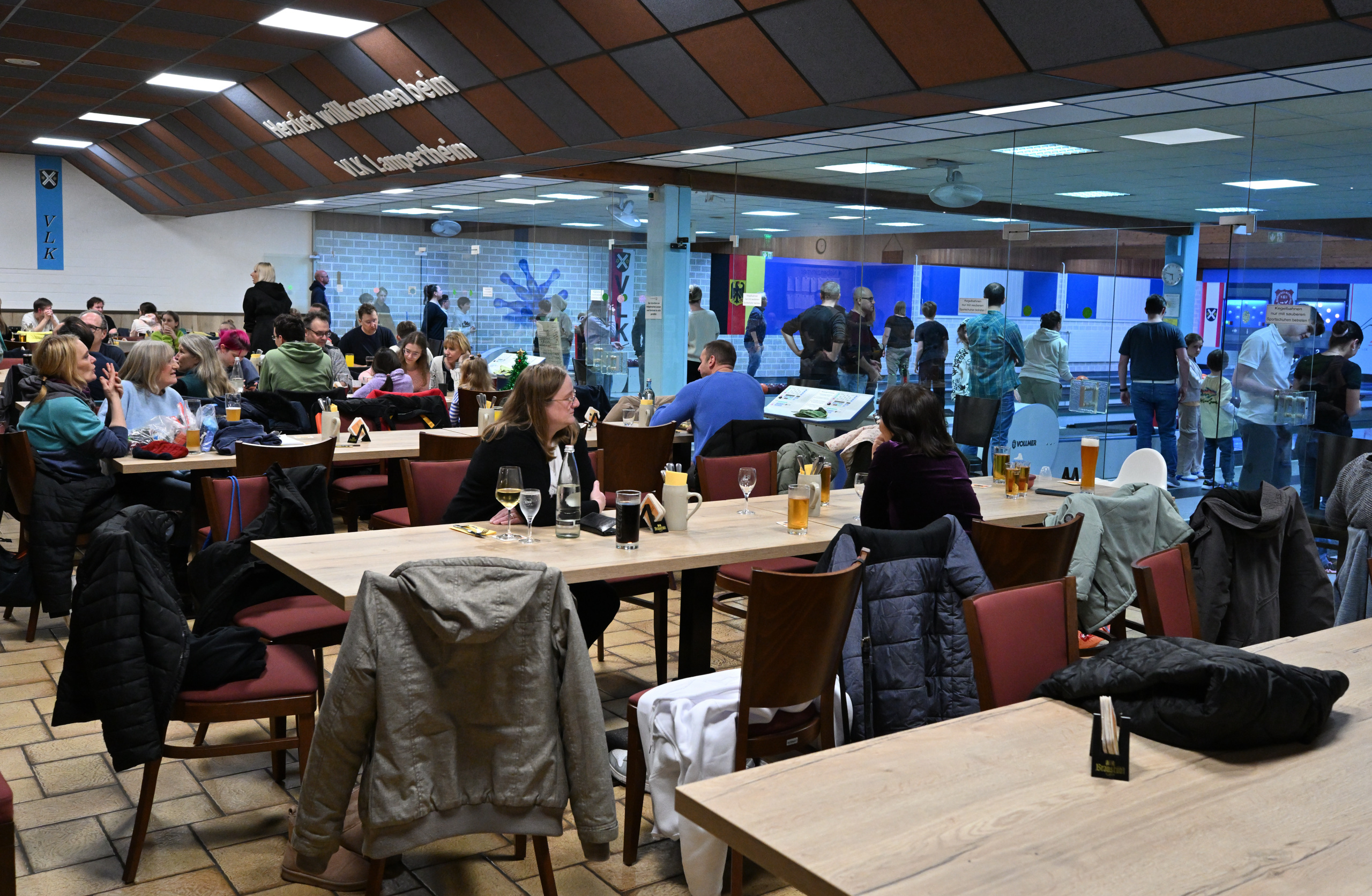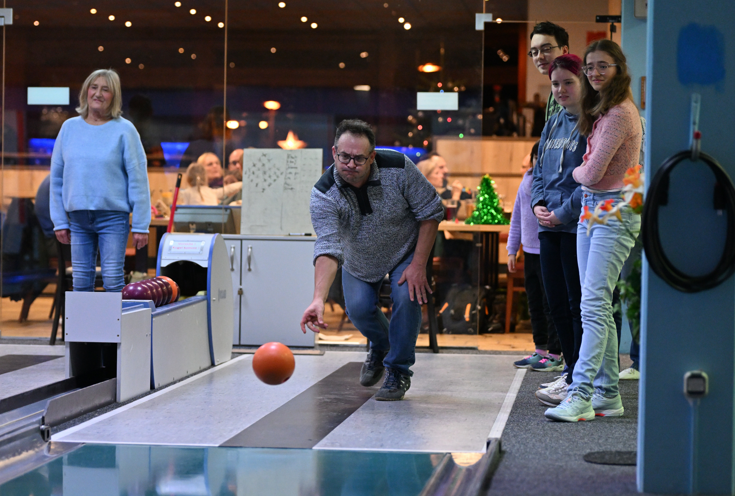 Kegeln erfordert erstaunlich ähnliche Tugenden. Also fand die diesjährige Weihnachtsfeier in der Biedensandhalle des Vereins Lampertheimer Kegler statt. 85 Anmeldungen bekundeten das große Interesse. Wir belegten alle 8 Bahnen. Auch brachten wir die Gaststätte Gut Holz ordentlich ins Schwitzen, um uns kulinarisch zu versorgen.
