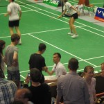 Insgesamt 12 Akteure des BVL machten sich am 26.04.2013 auf den Weg nach Darmstadt, um das Badminton Länderspiel Detschland – Dänemark live zu schauen. Es war ein hochklassiges Freundschaftsspiel des Europameisters gegen den Vize-Europameister. Vor insgesamt 1.400 Zuschauern bot sich uns bei atemberaubender Stimmung ein spannender 4:1 Erfolg der deutschen Mannschaft, die mit einigen Top-Spielern besetzt war. Neben dem Spielgeschehen wurde Karin Schnaase von der Nationalmannschaft verabschiedet, sie bestritt ihr letztes Spiel auf heimischen Boden und beendete ihre Karriere in der Nationalmeisterschaft nach der Mixed-Team-WM in Kuala Lumpur. Besonders erfreut waren vor allem unsere Jugendspieler von der Publikumsnähe der Spieler. Sie konnten sich einige Autogramme sichern, unter anderem vom amtierenden Europameister im Herreneinzel und der aktuellen Position 22 der Weltrangliste, Marc Zwiebler. Der Ausflug hat sich allemal gelohnt!